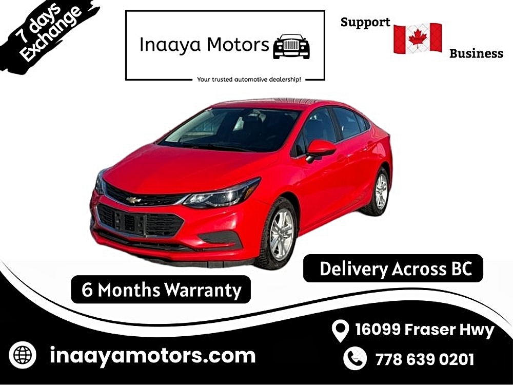 2017 Chevrolet Cruze LT w/1SD – Clean Title16099 Fraser Hwy, SurreyCall/Text: 778-639-0201Highlights✓ Stylish and fuel-efficient compact sedan with modern design✓…
